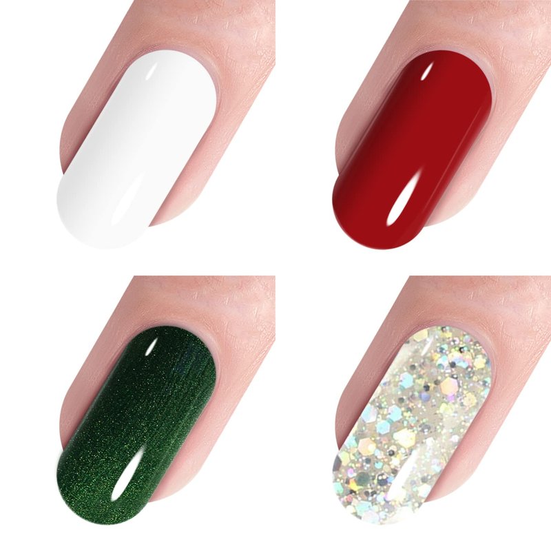 Vishine Soak Off UV LED Christmas Collection Glitter Gel Nail Polish Color Set Of 4 Colors X 8ml Red White Green Sparkle Silver Nail Art Kit Set
