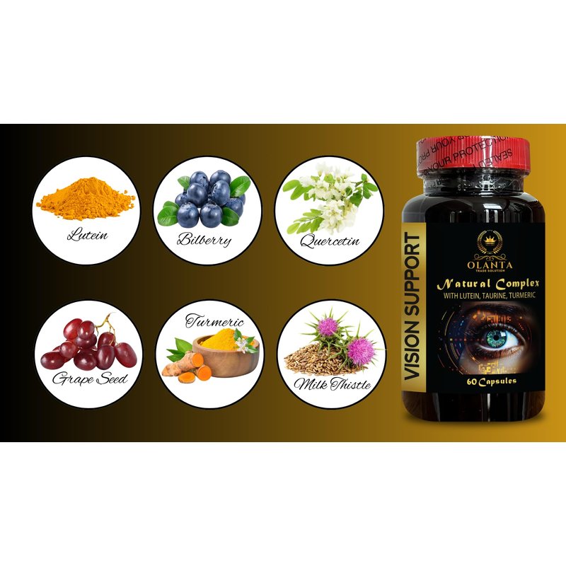 VISION SUPPORT COMPLEX - Eye and Vision support for Men & Women, advanced vision formula supplement, Vegan Eye Vitamins Supplement, Antioxidant - 1 Bottle 60 Capsules. Introducing VISION SUPPORT NATURAL COMPLEX, a premium supplement formulated to nourish and protect your eyes. This powerful blend includes Vitamin A, which is crucial for maintaining healthy vision, and Zinc, which supports the formation of visual pigments in the retina. Lutein, a key ingredient, helps filter harmful blue light, safeguarding your eyes from everyday strain. Bilberry Fruit Extract, known for its rich antioxidant properties, aids in improving circulation to the eyes and enhances visual performance. Grape Seed extract, another potent antioxidant, supports vascular health and contributes to overall eye wellness. Quercetin Dihydrate is included to support the health of the eye's delicate tissues, providing an extra layer of care. Taurine, an important amino acid, helps maintain retinal health and supports clear vision. Milk Thistle Seed is known for its detoxifying properties, supporting liver health, which is closely linked to eye health. Turmeric Root, with its natural compounds, adds another dimension of support for eye health. Lastly, L-Glutathione, a vital antioxidant, helps protect the eyes from oxidative damage, ensuring they stay healthy and vibrant. Experience the comprehensive benefits of VISION SUPPORT NATURAL COMPLEX and take a proactive step in maintaining your eye health. This thoughtfully crafted formula offers a holistic approach to eye care, helping you see the world with clarity and confidence. Give your eyes the premium care they deserve with VISION SUPPORT NATURAL COMPLEX.