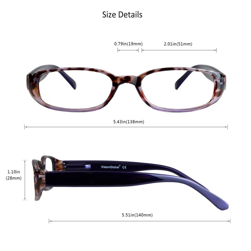 - 【Dimension】- Lens width: 51mm,Lens height: 28mm,Frame width: 138mm,Bridge: 19mm,Temple length: 140mm.