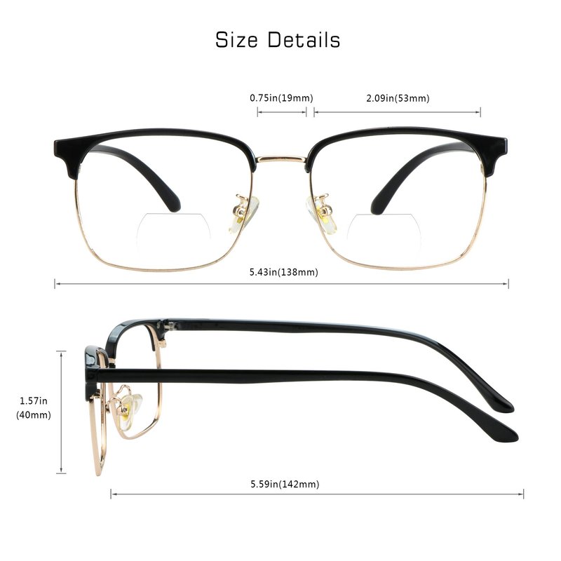 VisionGlobal Bifocal Reading Glasses, Photochromic Dark Gray Sunglasses for Men/DownWomen, Classic Retro Square Eyewear Reduce Fatigue (Black, Up+0.50/Down+3.00 Magnification)