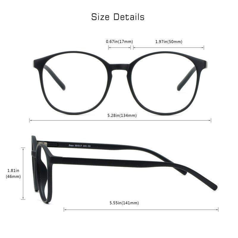 - Material:10g, ultra lightweight, frame TR90, no pressure on ears for long time wearing. Lens Resin. Oval shaped frames with a black pattern, crafted from lightweight yet durable TR90