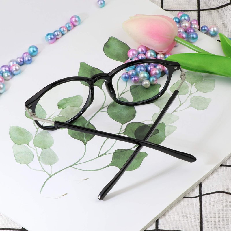 - Material:12.5g, ultra lightweight, frame TR90, no pressure on ears for long time wearing. Lens Resin. Oval shaped frames with a black pattern, crafted from lightweight yet durable TR90