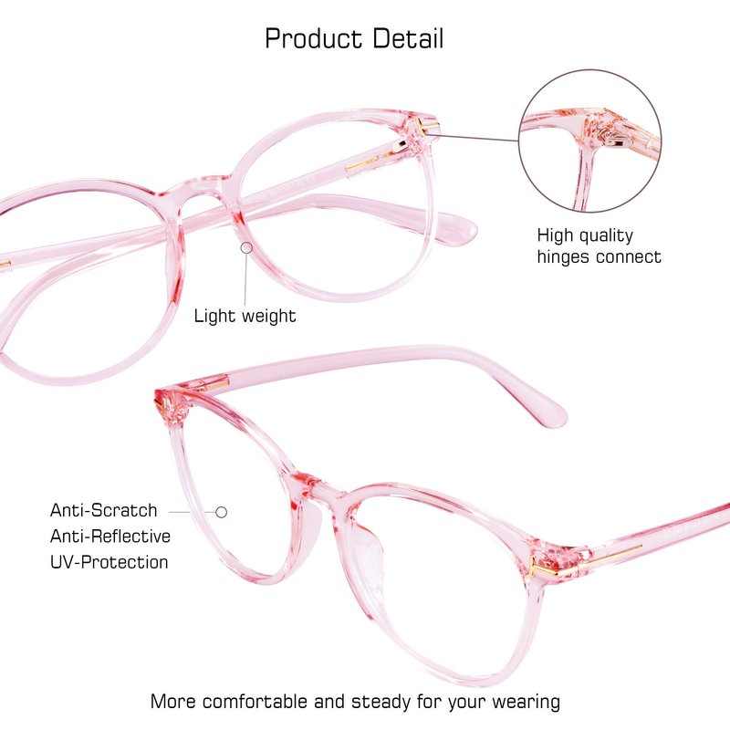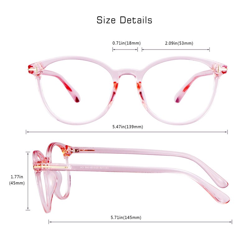 - Material:11g, ultra lightweight, frame TR90, no pressure on ears for long time wearing. Lens Resin. Oval shaped frames with a clear pink pattern, crafted from lightweight yet durable TR90