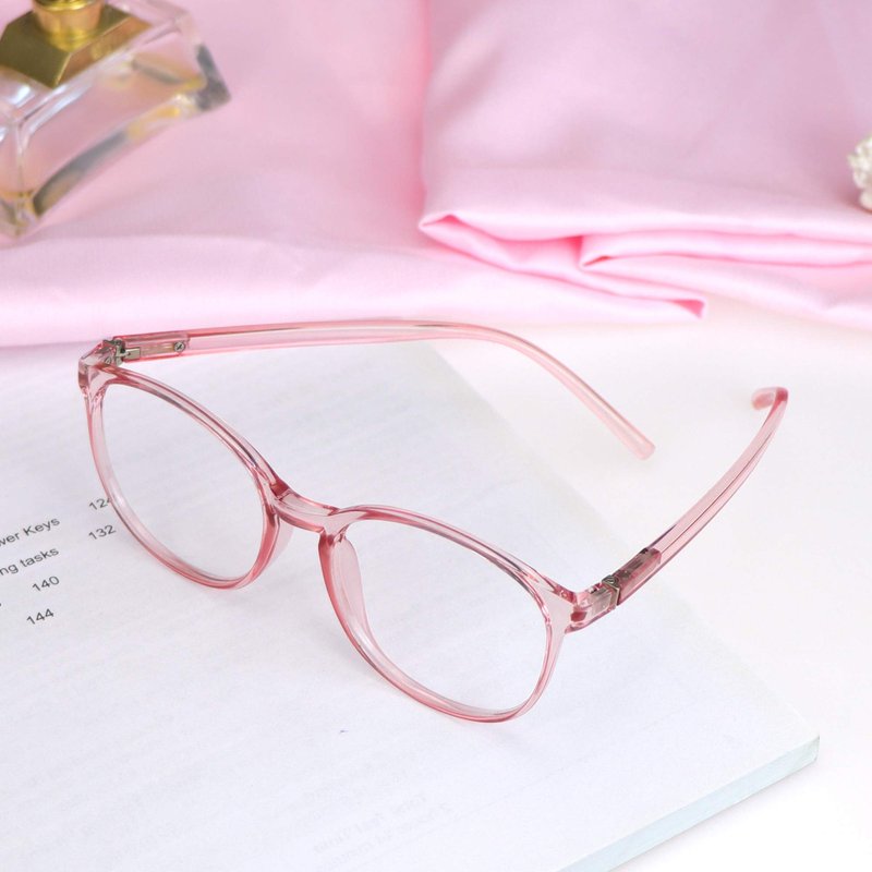VisionGlobal Blue Light Blocking Glasses for Women/Men, Anti Eyestrain, Stylish Oval Frame, Anti Glare (Clear Pink, 1.00 Magnification)