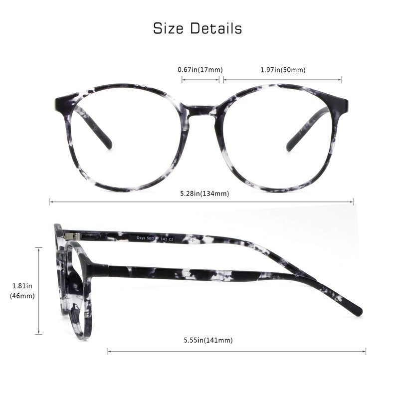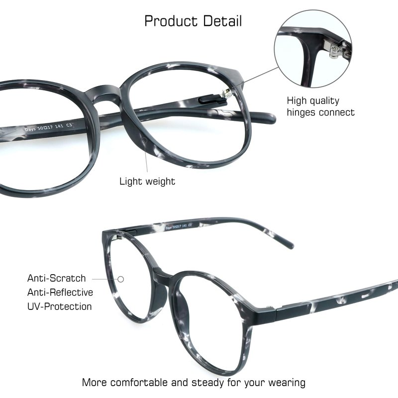 - Material:10g, ultra lightweight, frame TR90, no pressure on ears for long time wearing. Lens Resin. Oval shaped frames with a gray pattern, crafted from lightweight yet durable TR90