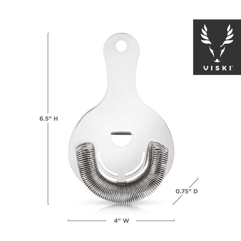 Viski Hawthorne and Bartending Strainer - Stainless Steel Bar Cocktail Strainer for Drinks with Handles,Silver