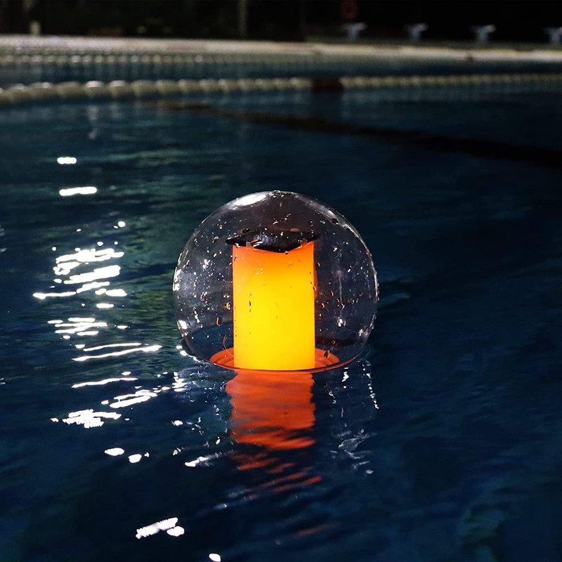 - ENERGY SAVING & SOLAR POWERED FLOATING POOL LIGHTS.You can put our solar pool lights on the lawn, in the pond, or anywhere and enjoy flame effect in the night, because they are solar powered and no battery changes required.