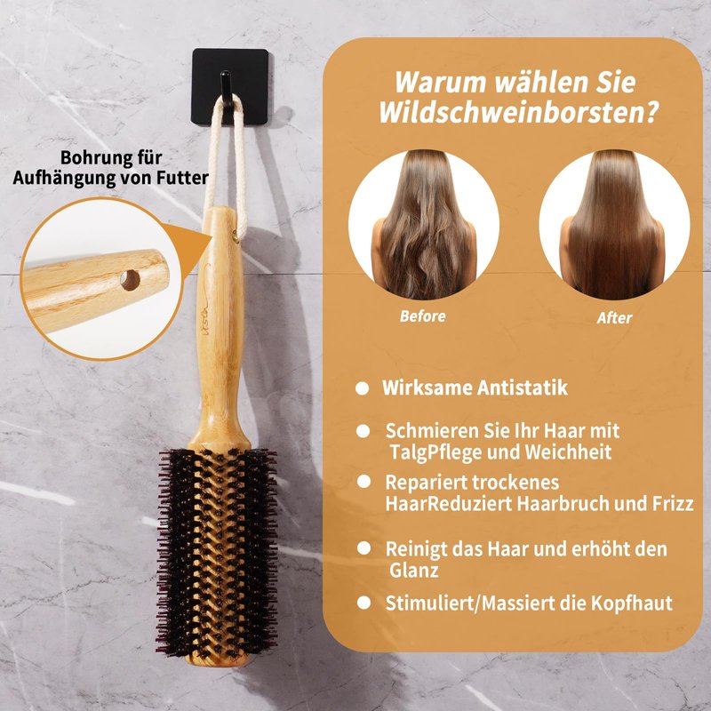 - Effortless use & Easy to clean: The ergonomic Bamboo round handle feels comfortable. The cushioned padding allows the hair brush women to effortlessly flow through your hair without feeling stiff. It is necessary to clean the round hairbrush regularly to ensure your hair stays healthy.