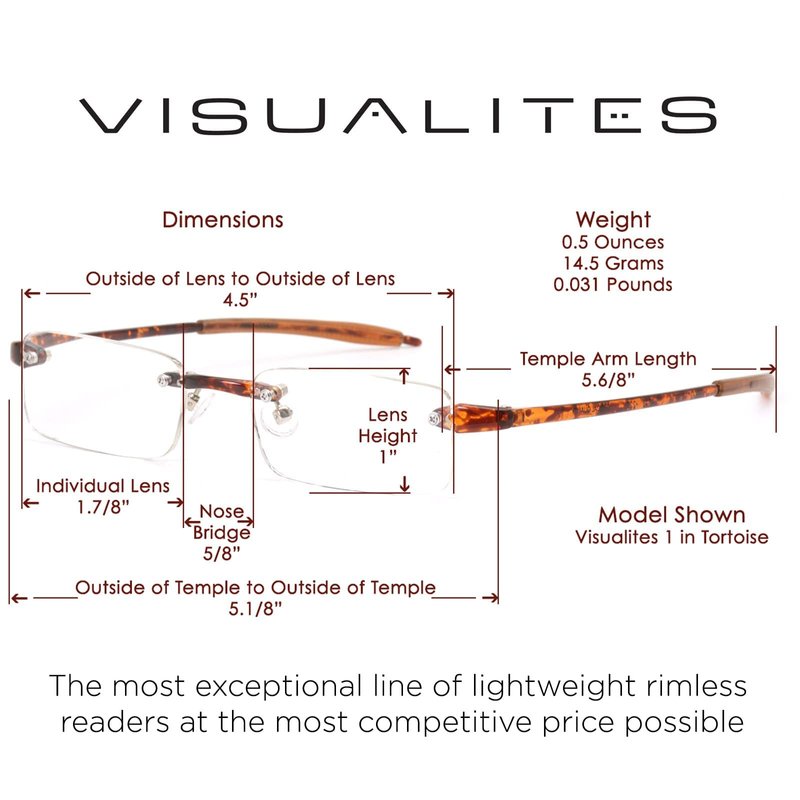 - Stylish lightweight rimless reading glasses that are incredibly comfortable thanks to their extreme light weight, adjustable nose pads to control the fit, and the silicon sleeves that cover the temple tips helping to prevent slippage & add comfort.
