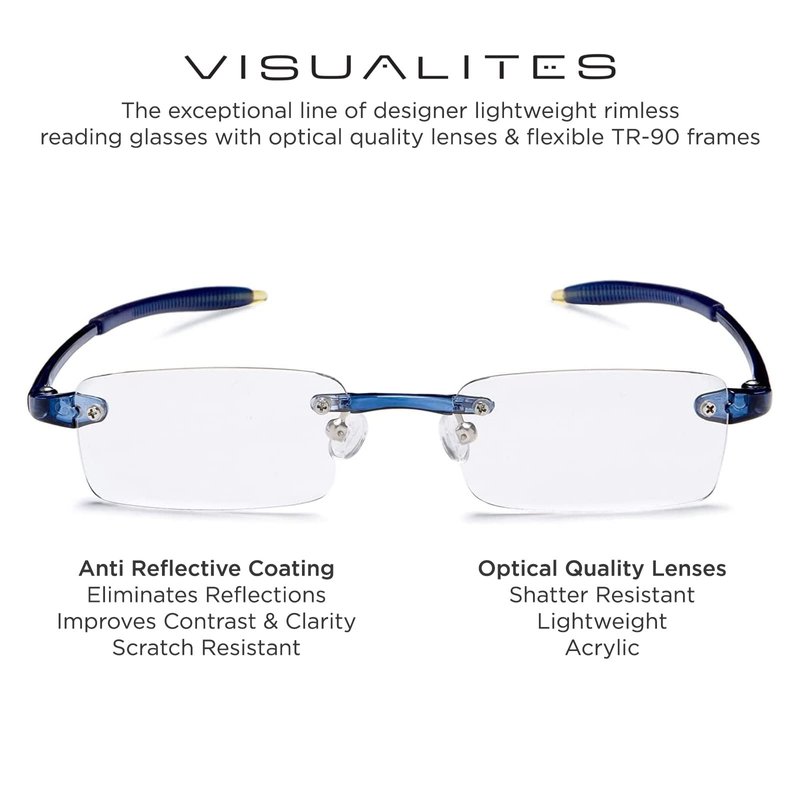 Visualites 1 Navy Blue 1.50 Power Lightweight Rimless Reading Glasses For Men and Women