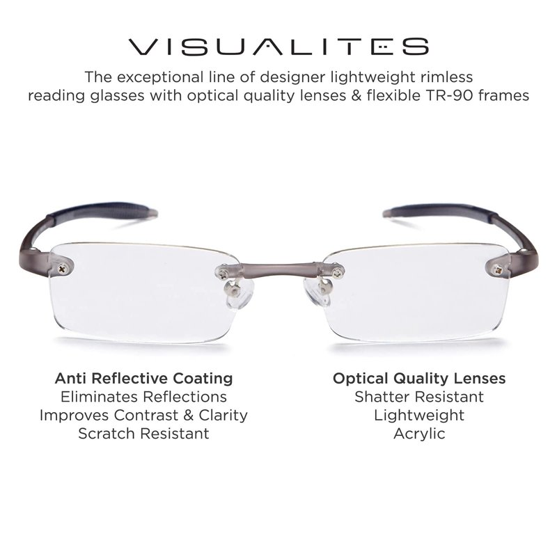 Visualites 1 Smoke 1.50 Power Lightweight Rimless Reading Glasses For Men and Women