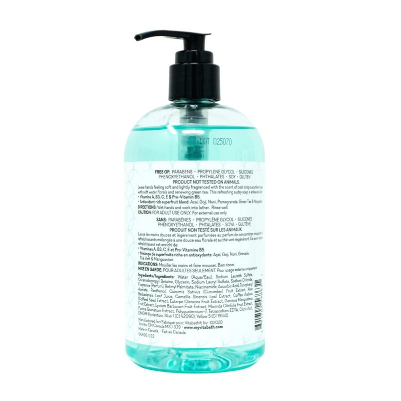 Vitabath Cucumber & White Tea Hand Soap Cleansing Moisturizing Wash for Hands with Nourishing Botanicals Aloe, Vitamins & Antioxidants - Cruelty-Free, Gluten-Free, Paraben-Free - 16 oz