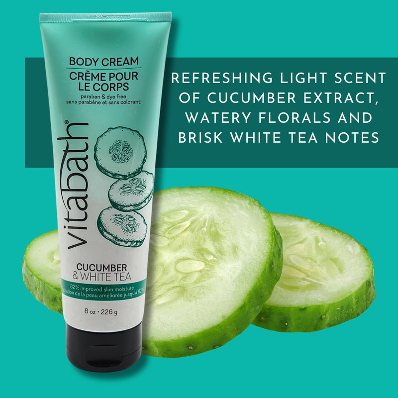 Vitabath Cucumber & White Tea Moisturizing Body Cream - Soothing Hydration Vitamin & Nutrient Skin Care - Replenishing All Over Dry Skin Lotion Moisturizer for Women & Men - 8 Ounce