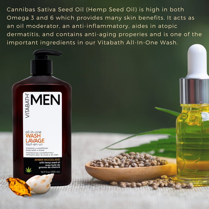 - ONE PUMP FULL BODY CLEANSE - Thick foamy cream lather made with hemp seed oil will provide both men and women the benefit of a body wash, shampoo, conditioner, and shave product in one rich nourishing gel.