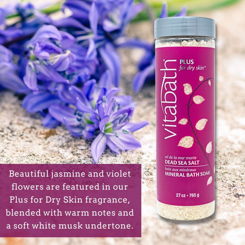 Vitabath Plus for Dry Skin Mineral Bath Soak Reviving Muscle Recovery, Soreness, Tension Relaxing Dead Sea Salts & Skin Nourishing Botanical Oils for Women & Men - Cruelty-Free - 27 oz