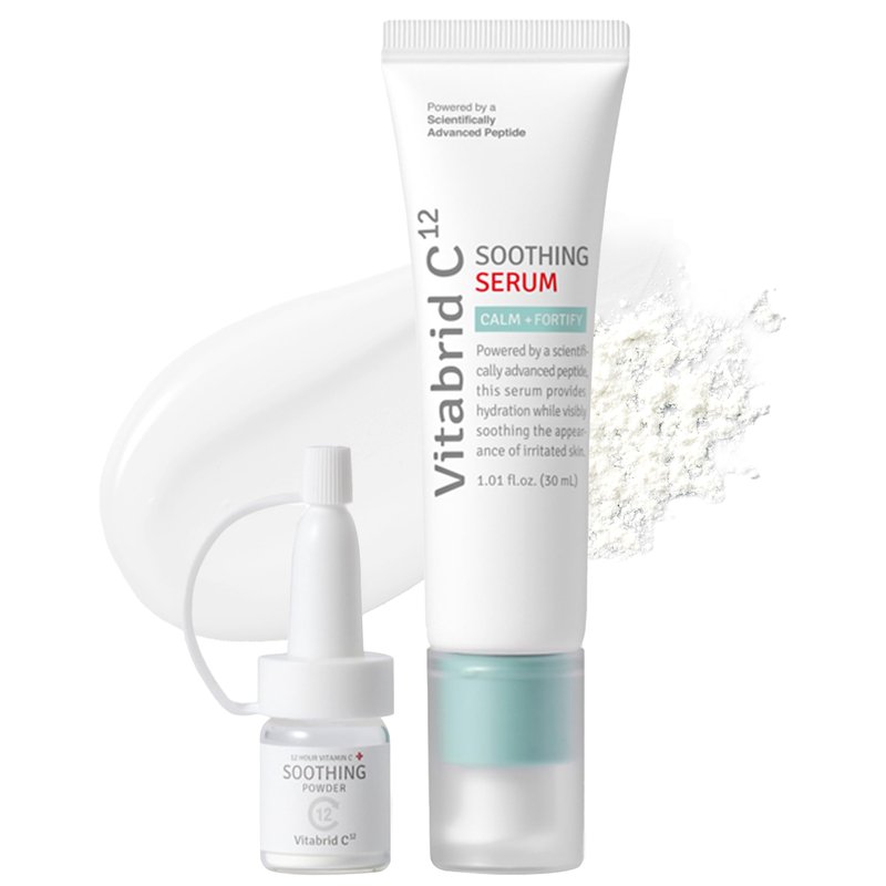 VITABRID C12 12 Hour Vitamin C Soothing Serum for Acne & Blemish-Prone Sensitive Skin - Improves Sebum, Pores and Redness - Peptides, Niacinamide, Madecassoside, 1.01 fl.oz. Powder 0.04oz.