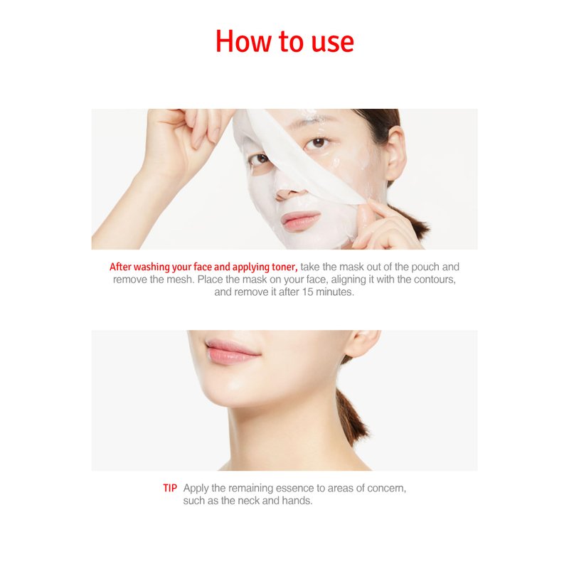 - EASY APPLICATION FOR MAXIMUM RESULTS: To use, apply the mask to a cleansed and toned face. Place the sheet on your face with the mesh facing up, then gently remove the mesh. Leave the mask on for 10-20 minutes, then peel it off and lightly tap any remaining essence into the face and neck with your fingertips.