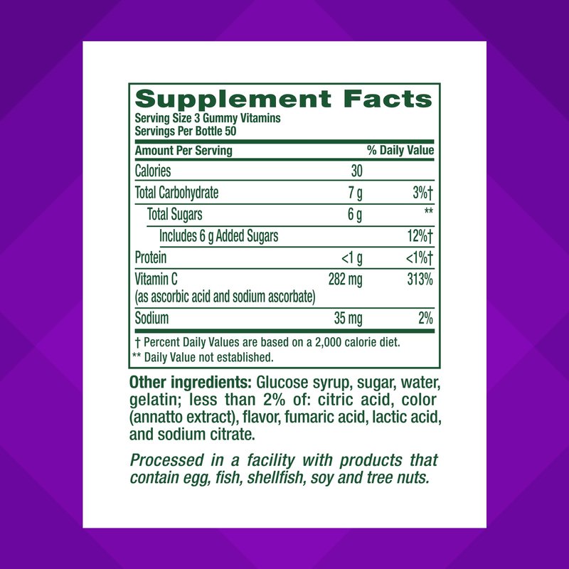 - Convenient Vitamin C supplement gummies are made with natural fruit flavors, have a satisfying chewy texture and are a great alternative to traditional vitamin pills that are hard to swallow