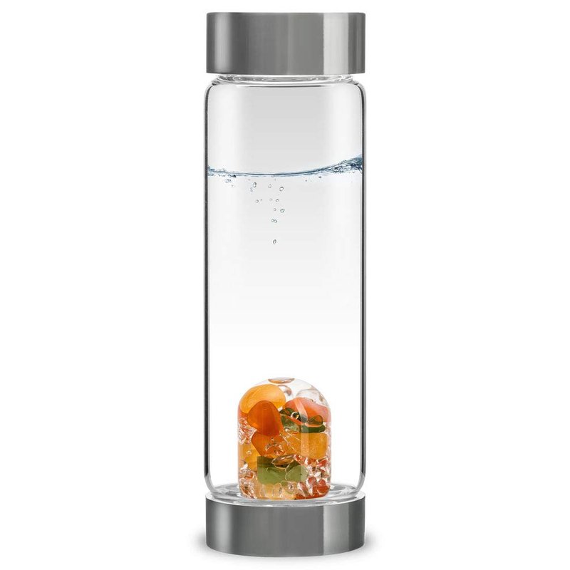 VitaJuwel ViA HAPPINESS | Crystal Water Bottle (glass, 16.9 fl.oz.) with Jade, Orange Calcite, Carnelian & Clear Quartz for Optimism, Good Luck, Motivation