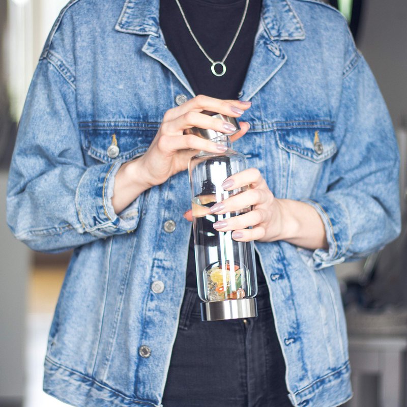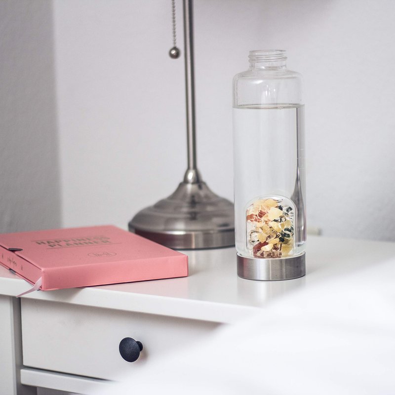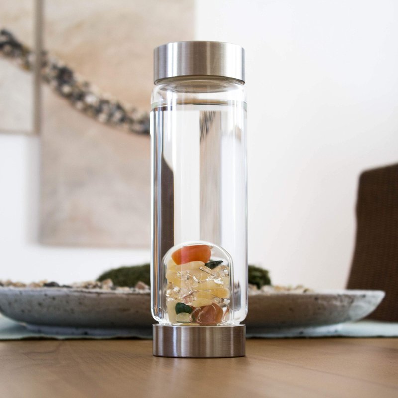 - CRYSTAL VIBES. Our 16.9fl.oz. glass bottle with a holistic blend of genuine crystals is the perfect companion to infuse your water with positive energy on-the-go. Naturopathic doctors have been using the vibrant energy of precious stones to prepare potent crystal elixirs for their gemstone therapies for many years. With the help of gemologists and naturopaths we’ve reinterpreted this tradition and created a number of unique crystal blends aimed at specific crystal attributes.