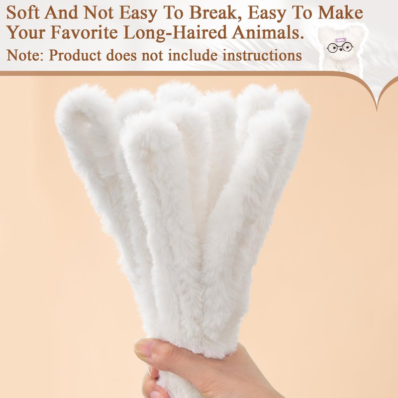 VitalCozy 10 Pcs 39.37 Inches Jumbo Fur Material Pipe Cleaners Chenille Stems Pipe Cleaner Craft Pipe Stems DIY Projects and Craft Supplies Decorations(Cream White)
