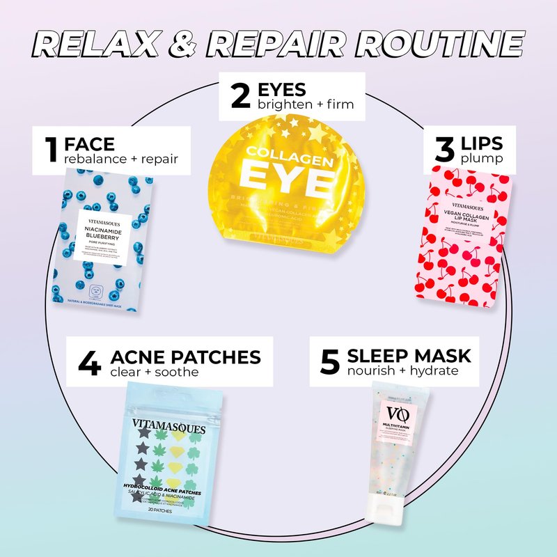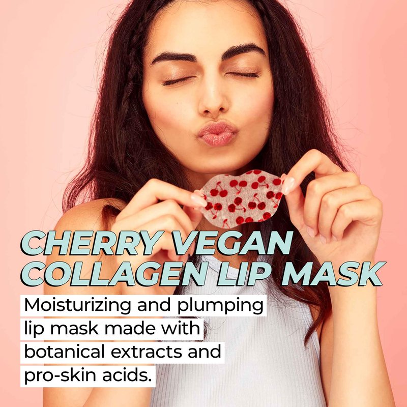 - Collagen Lip Mask: Vitamasques Cherry Vegan Collagen Lip Mask is a vegan-friendly moisturizing and plumping lip mask made with botanical extracts and pro-skin acids to get the luscious, plump lip effect. Includes 3 individually packaged lip masks.