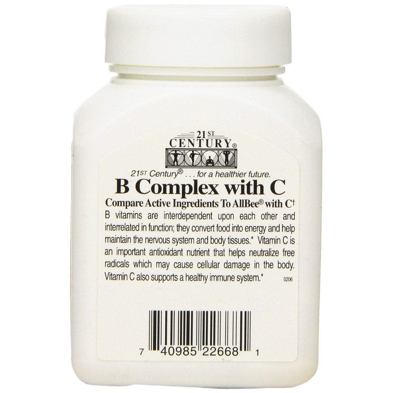 B vitamins are interdependent upon each other and interrelated in function; they convert food into energy and help maintain the nervous system and body tissues. Vitamin C is an important antioxidant nutrient that helps neutralize free radicals and support a healthy immune system. 21st Century's B Complex with C is unconditionally guaranteed for purity, freshness and label potency.