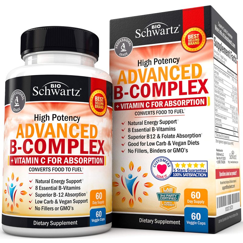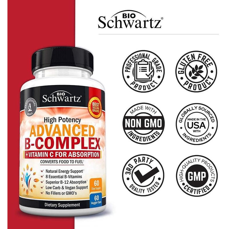 - Includes all B vitamins: BioSchwartz advanced B complex includes vitamins B1, B2, B3, B5, B6, B7, B9, B12, plus folic acid & vitamin C to support healthy natural energy levels and heightened cognitive performance