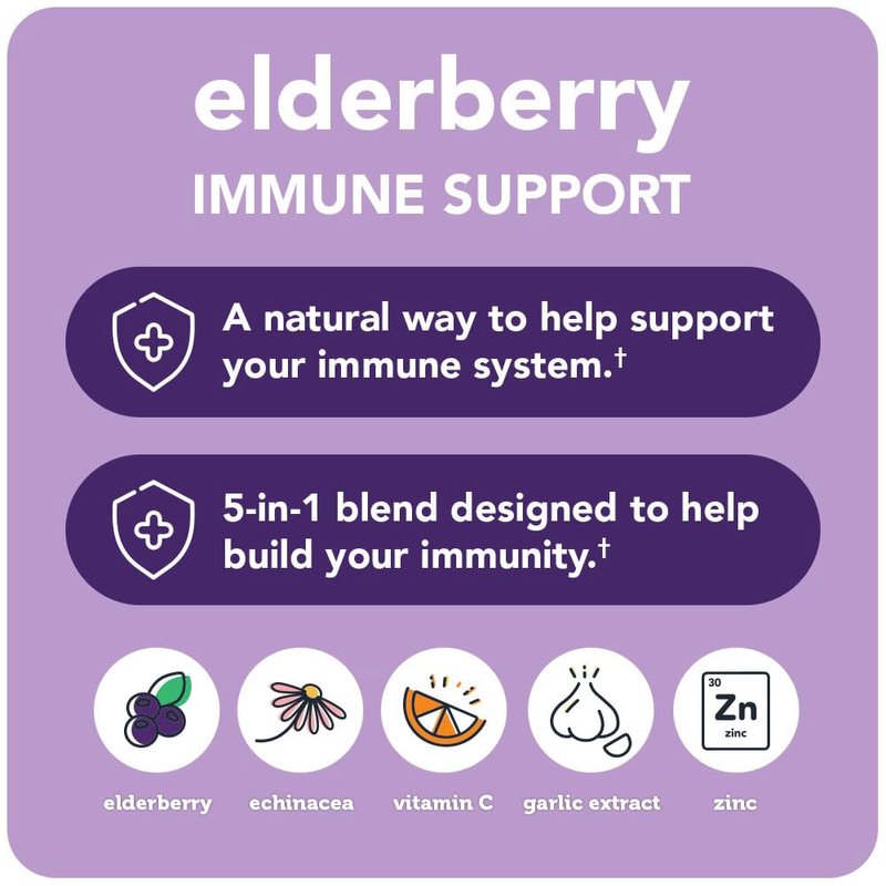 - ELDERBERRY IMMUNE SUPPORT - Made with the perfect blend of natural ingredients to help support your immune system. We’ve combined elderberry, vitamin C, zinc, garlic and echinacea all in one serving