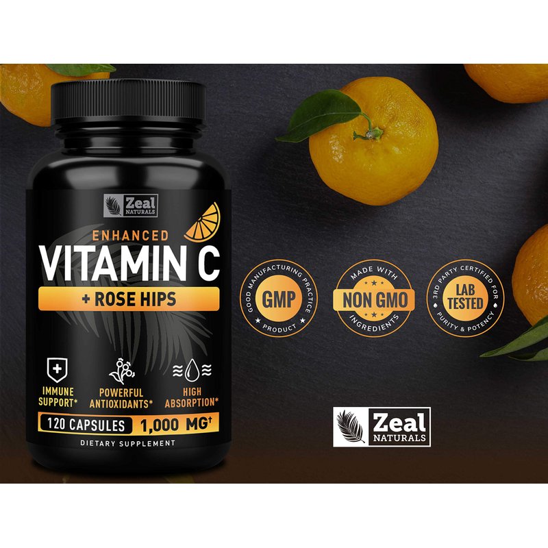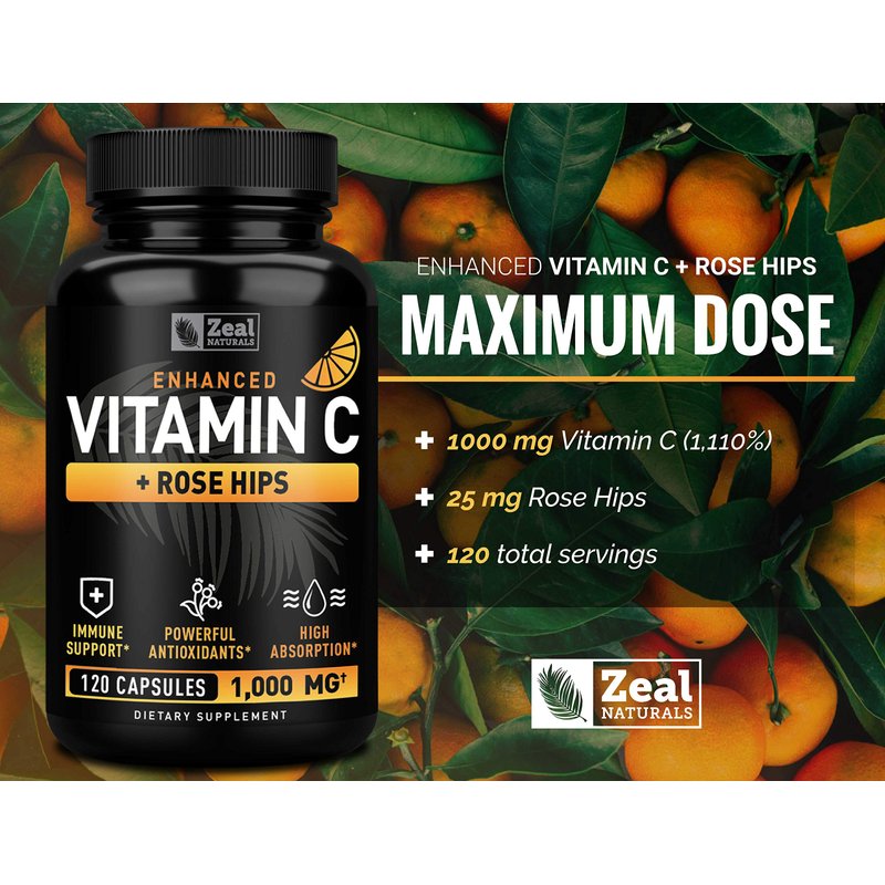 High Dose Vitamin C with Rose Hips for Maximum Immune Support* Get the most out of Vitamin C with Zeal's Vitamin C + Rose Hips combining the immune support benefits of 1000mg Ascorbic Acid Vitamin C and the powerful antioxidant & bioflavonoid properties of Rose Hips for a powerful immune system boost when you need it most.* 1000 mg Vitamin C 25 mg Rose Hips Zero: Artificial Sweeteners, Colors, Preservatives Manufactured in the USA Non-Gmo 3rd Party Lab Tested