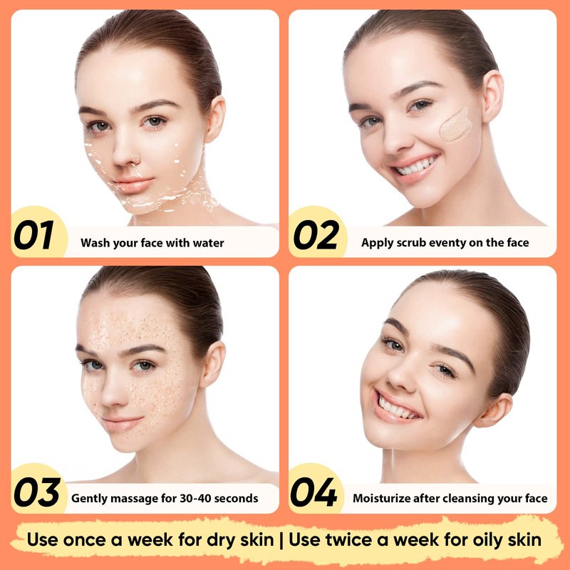 - HOW TO USE THE FACE EXFOLIATING SCRUB: Apply to wet face, scrub gently with your fingertips, and rinse thoroughly; use 3 times/week for soft, glowing skin.