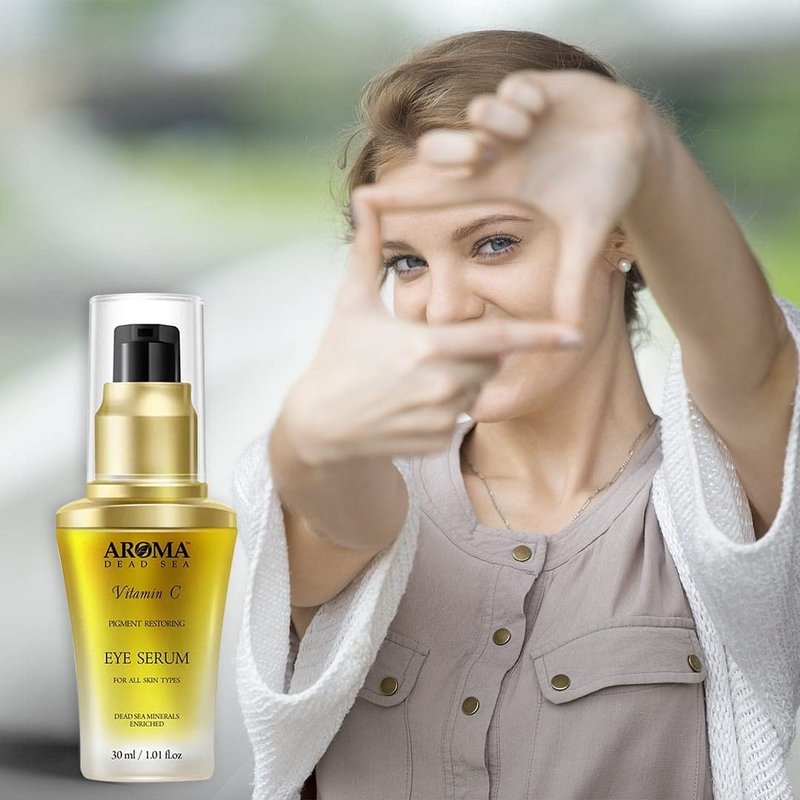 - Antioxidant-rich formula featuring vitamin C, vitamins A and E, jojoba oil, and Dead Sea minerals targets visible signs of aging around the delicate eye area