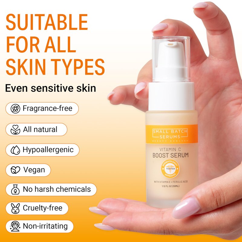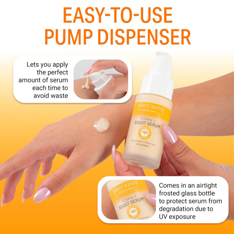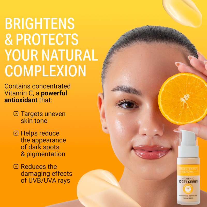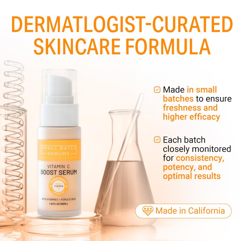 Introducing our SMALL BATCH SERUMS Vitamin C Serum, the best vitamin c serum for face that you've been waiting for. Formulated with pure vitamin c, this serum is a powerhouse of antioxidants that work tirelessly to brighten your skin and combat signs of aging. This vitamin c serum for face is not just a serum, it's a skin revolution. It's a potent blend of ingredients that work together to deliver visible results, making it the best vitamin c face serum on the market.