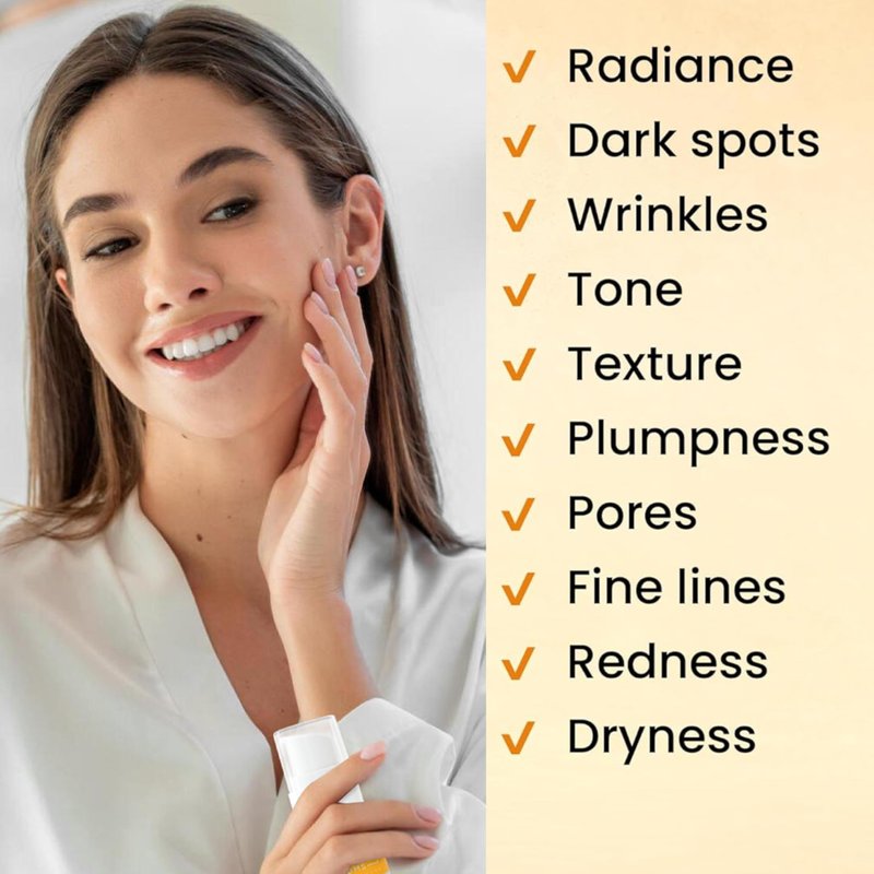 - Skin Brightening - Enriched with Vitamin C, our face serum for women helps brighten your skin, reducing the appearance of dark spots and hyperpigmentation. It also helps boost your skin's natural radiance and glow.