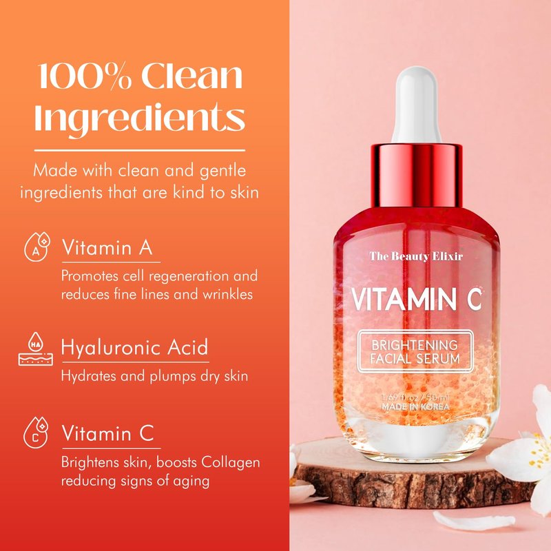 - BRIGHTENS SKIN TONE: Infused with Vitamin C, our serum brightens the skin, reducing dullness and promoting a more even skin tone. Unveil a luminous complexion that radiates with youthful vitality!