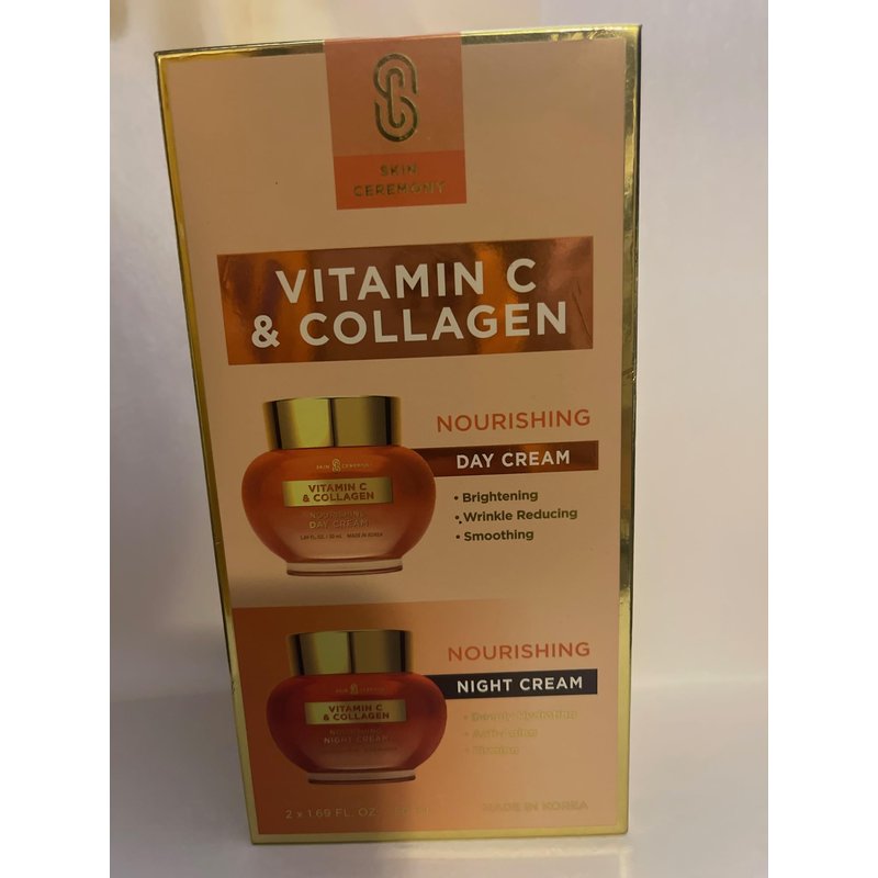 Experience Radiant Skin with Skin Ceremony Vitamin C & Collagen Day/Night Cream Unveil the beauty of luminous, youthful skin with our Skin Ceremony Vitamin C & Collagen Day/Night Cream. Formulated with precision, this 1.69 fl. oz. jar of skincare luxury is your key to a brightened, wrinkle-reduced, and deeply hydrated complexion. Key Benefits: Brightening Powerhouse: Infused with potent Vitamin C, our day/night cream actively works to illuminate your skin, reducing the appearance of dullness and unveiling a radiant complexion. Wrinkle-Reducing Elixir: Say goodbye to fine lines and wrinkles. Our advanced formula targets signs of aging, promoting smoother and more youthful-looking skin. Intensive Hydration: Experience a surge of moisture as our cream deeply hydrates your skin, leaving it supple and revitalized. Perfect for day and night use, it quenches your skin's thirst, promoting a healthy and plump appearance. Anti-Aging Marvel: Powered by collagen, an essential protein for skin elasticity, our cream helps combat the effects of time, restoring firmness and resilience to your skin. Firming Elegance: Enjoy the sensation of tightened and lifted skin. Our cream enhances your skin's firmness, creating a more sculpted and defined facial contour. Why Choose Skin Ceremony? At Skin Ceremony, we believe in the transformative power of skincare. Our Vitamin C & Collagen Day/Night Cream results from extensive research and a commitment to delivering premium quality. Embrace a skincare ritual that goes beyond the surface, revealing the beauty that lies beneath. Indulge in the luxury of Skin Ceremony and let your skin celebrate the care it deserves. Illuminate, rejuvenate and redefine with every application.