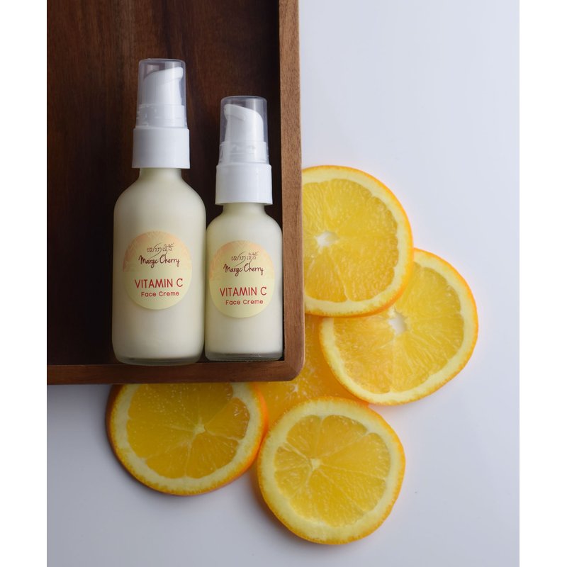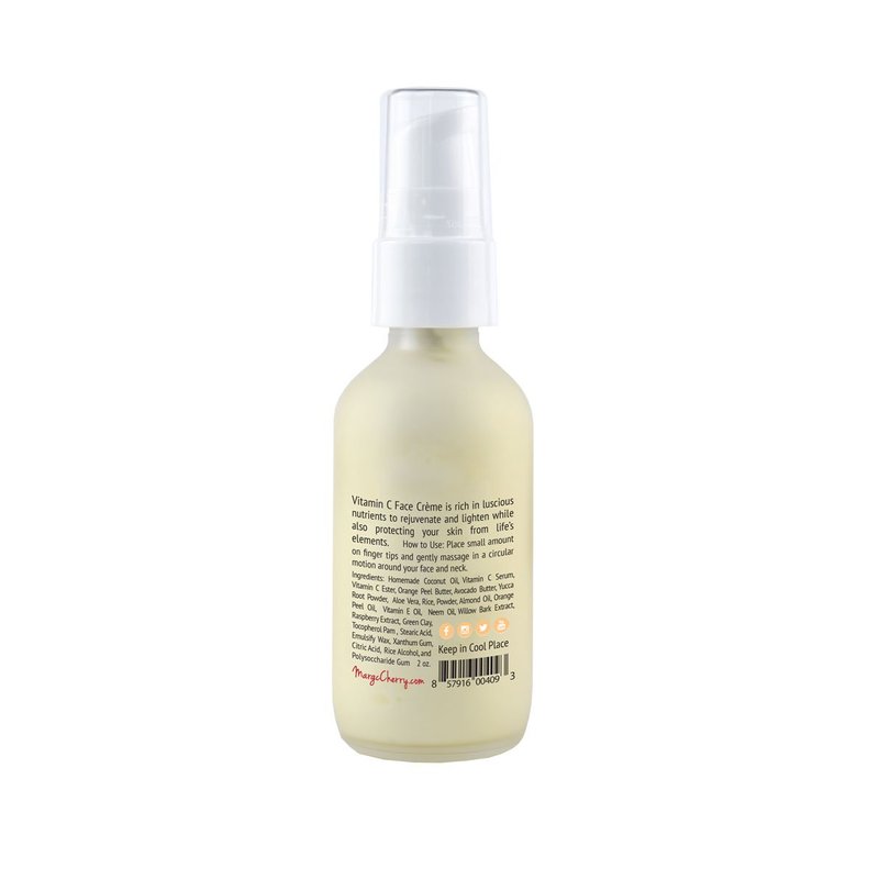 - Vitamin C Face Crème clarifies any uneven skin tone while Almond and Raspberry soothes and moisturizes for a hydrating day.
