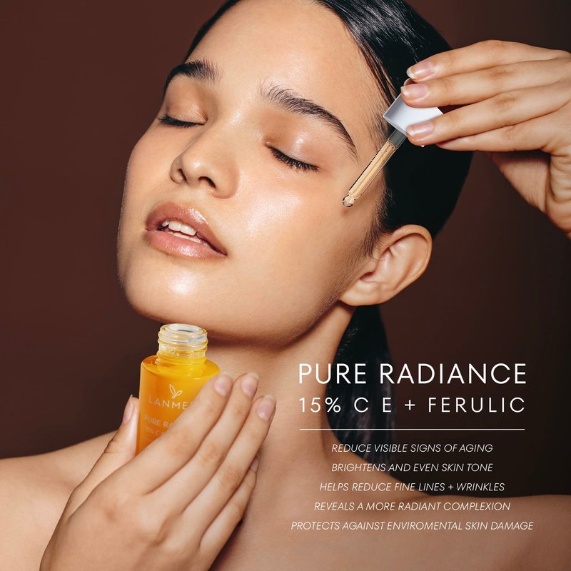 Lanmeri Pure Radiance Vitamin C, Vitamin E and Ferulic Acid Serum is a magical blend of natural ingredients that effectively boost the skin's immunity to prevent, protect and renew all signs of aging. Containing Vitamin C, Vitamin E, Ferulic Acid and Hyaluronic Acid, our premium formula is the secret to younger, smoother skin. Suitable for all skin tones and all skin types, including sensitive skin.