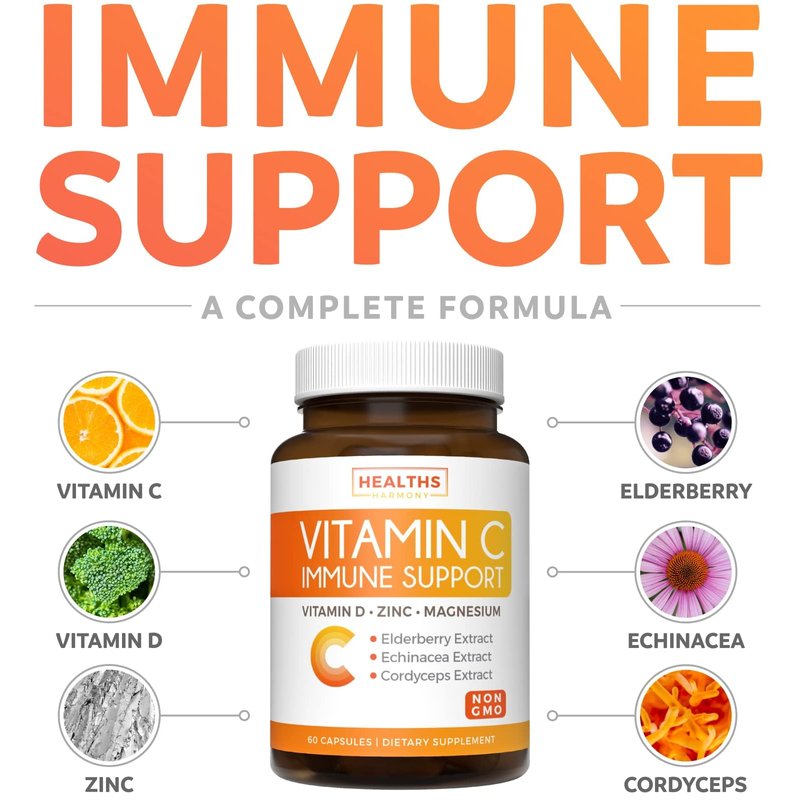 Vitamin C Immune Support Supplement - Immunity Boost Blend with Elderberry Vitamin C and Zinc for Daily & Seasonal Support - Immunity Supplement with Magnesium Zinc Vitamin C and D (1 Month Supply)