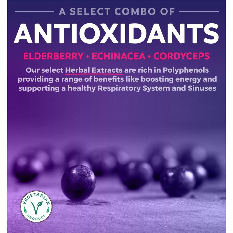 - All In One: Our immune boost supplement is the simplest way to receive the benefits you'd normally only get from a host of other products, like Vitamin C gummies, Elderberry syrup, or Zinc lozenge and more, in one serving of 2 easy-to-swallow, vegetarian-friendly capsules.