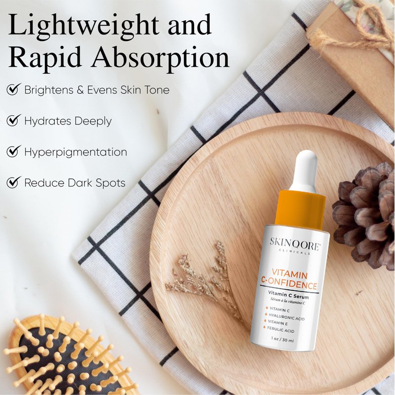 Make Your Skin a Priority with Replenishing Skinqore Vitamin C-onfidence Facial Serum Your skin is under constant duress from the elements, the environment, and even your makeup. All three dry out and damage your skin, especially if you aren’t properly hydrating and moisturizing every pore. We developed Skinqore Vitamin C-onfidence as an all-in-one facial serum with Vitamin C and E, as well as hyaluronic acid, so you can turn back the hands of time and regain your skin’s youthful clarity, firmness, and vibrance. Perfect for diminishing fine lines and wrinkles, reducing discoloration and dark spots, and giving you back suppleness and an even skin tone, this is a must-have skincare solution for anyone tired of looking tired and ready for complete rejuvenation.