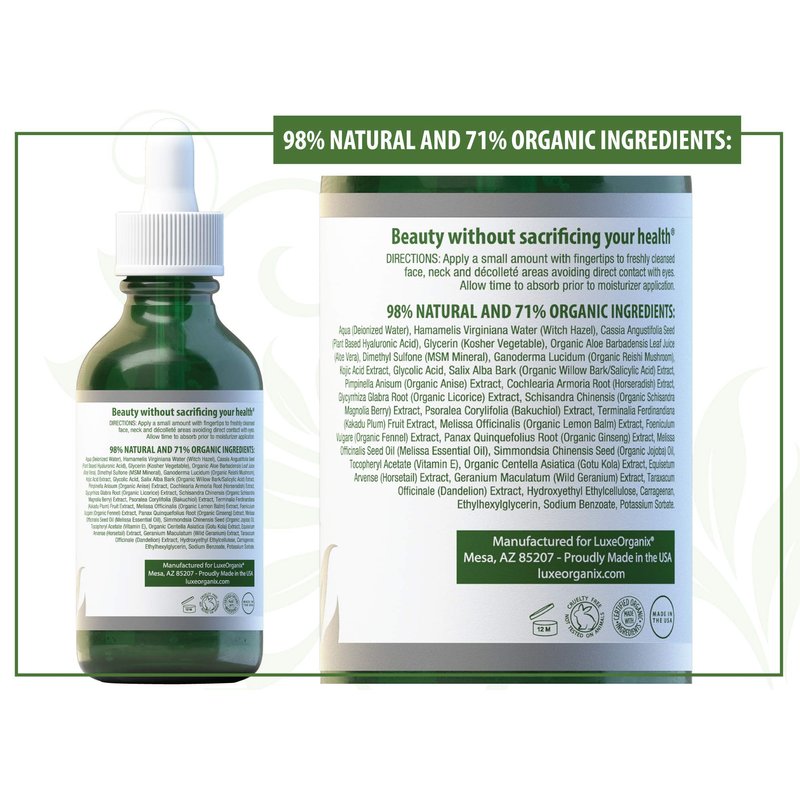 - TRUE SKIN ADAPTOGEN FOR ALL SKIN TYPES: Women, Girls, and Men - Every Skin Type & Ethnicity: Spa quality, Esthetician recommended bio-available organic and natural ingredients won't leave skin dry, dull or broke out like other facial serums, making LuxeOrganix amazing for all skin types - normal, combination, mature, sensitive, oily, and ethnically mixed.