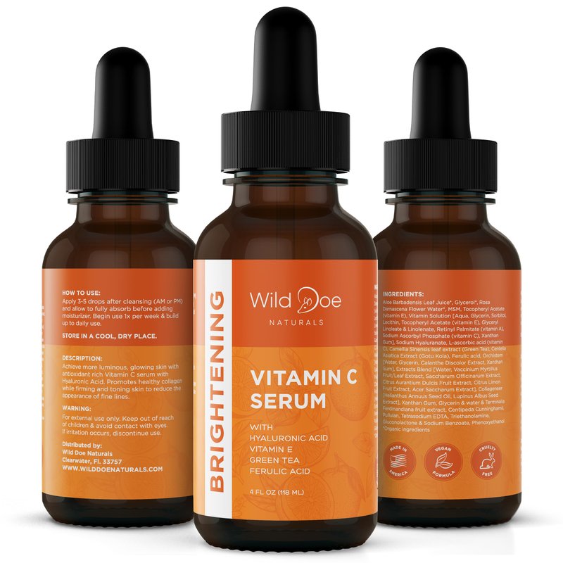 - HYPOALLERGENIC FACE SERUM FOR SENSITIVE SKIN: Safe + effective FOR ALL SKIN TYPES, Wild Doe Naturals Vit C Serum is non-comedogenic, with no added color, fragrance, parabens, phthalates or sulfates. 100% Vegan, Cruelty Free + Made in the USA. Try this Vitamin C for face with Pure Hyaluronic Acid serum & discover how to get glowing skin!