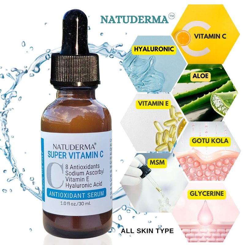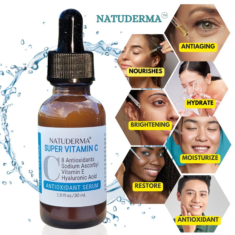 - Brighter and smoother skin look with Natuderma Super Vitamin C Serum; a brightening, anti-aging serum for face, with daily use this face serum enhances your skin's appearance by diminishing the appearance of dark spots and fine lines, leaving you with a radiant and healthy glow