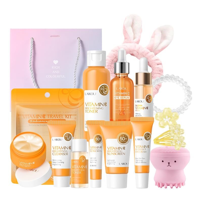 - Vitamin C skincare set, Vitamin C skincare serum, cream, sunscreen, eye cream, plus travel skincare set