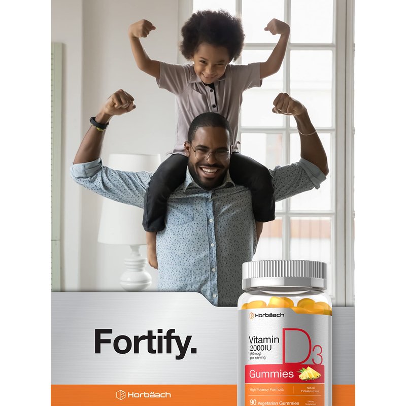 Horbaach Vitamin D Gummies for adults are the delicious way to achieve nutritional excellence. Natural pineapple flavored gummies deliver a blast of tropical flavor, providing 50 mcg (2,000 IU) of Vitamin D (as D3 Cholecalciferol) per serving. Our vegetarian formula is made without artificial flavor or sweetener, providing the honest nutrition you deserve in pursuit of healthy living.