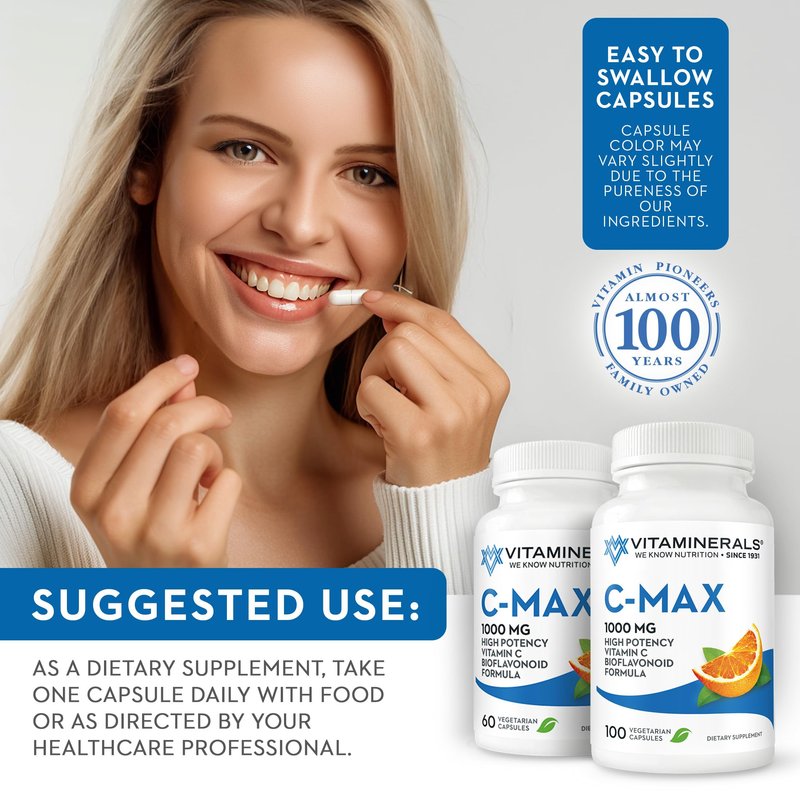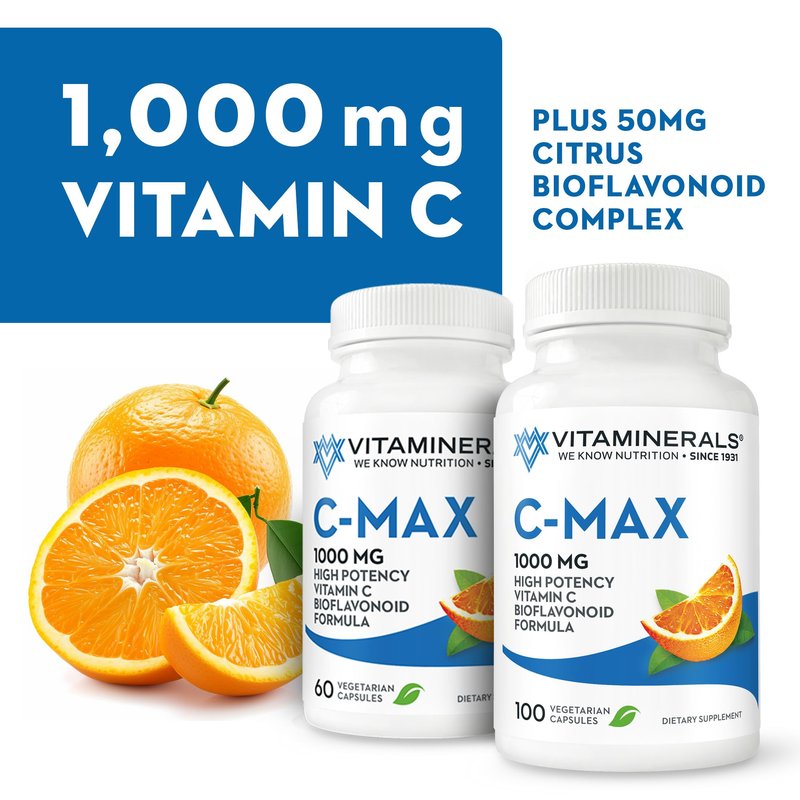 Vitaminerals ® C MAX Antioxidant Support 1,000 mg Vitamin C, with Bioflavanoids - Veggie Capsules (60 Vegetarian Capsules)