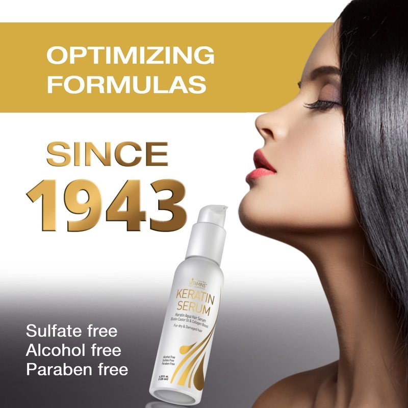 Want Instant Luxurious, Silky and Soft Salon-Like Hair at Home? Vitamins Keratin Protein Hair Serum Is the Miracle You have Been Waiting For. Enriched with Biotin Collagen Moroccan Argan Castor & Coconut Oils, This Professional Hair Treatment Leaves Your Locks Fuller, Thicker, And Lovelier Than Ever. You will Be Confidently Selfie Ready 24/7 With Effortlessly Glossy Waves, Curls, Or Straight Hair.