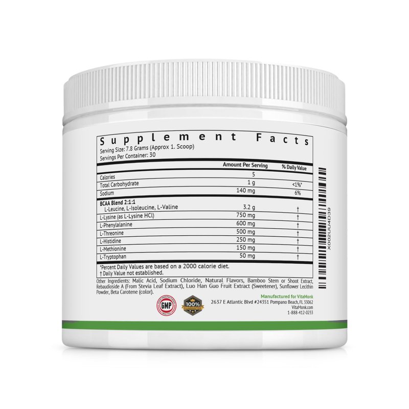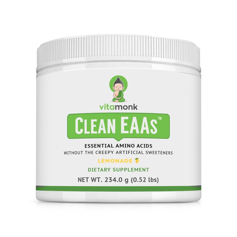 VitaMonk Clean EAA - EAAs with No Artificial Sweeteners for Pre-Workout, Energy and Recovery - Max Bioavailable EAA Powder with 9 Essential Amino Acids - Natural Lemonade Flavor