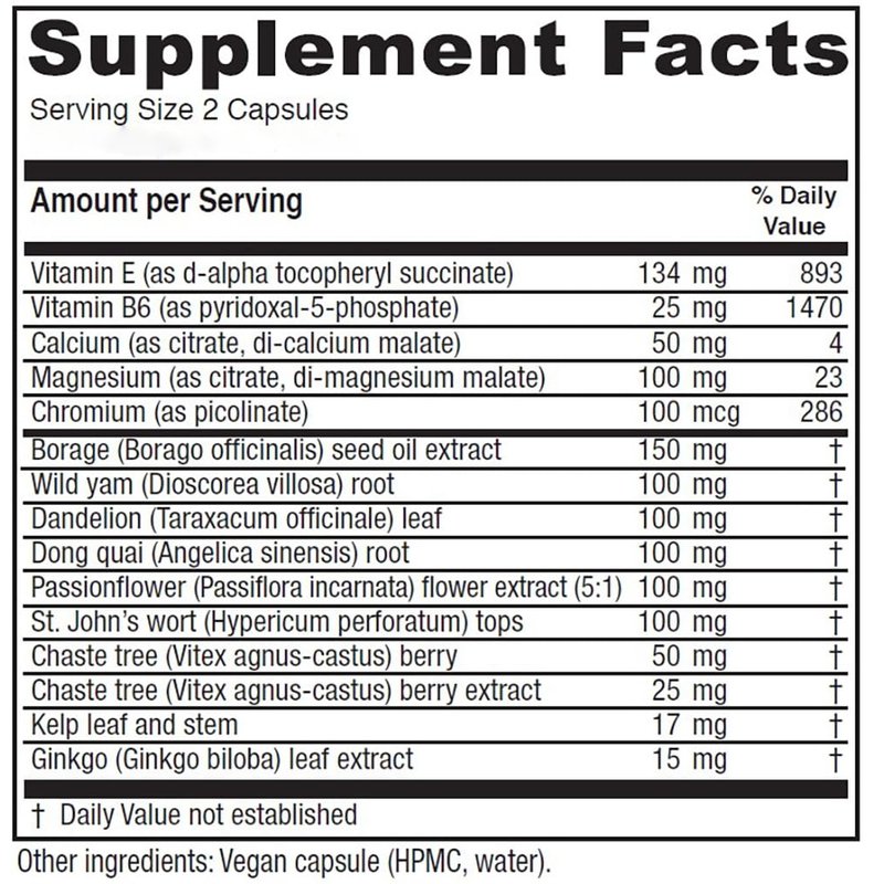 - Vitamin E, Vitamin B6, Magnesium and Calcium are all nutrients indicated in related research, to support premenstrual symptom relief